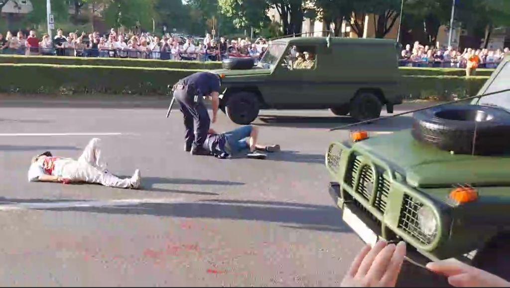 Tema U petak, 24. listopada, Općinski prekršajni sud u Zagrebu donio je presudu kojom se četvero aktivista i aktivistkinja kažnjava s ukupno gotovo 10 tisuća eura zbog prosvjedne akcije izvedene tijekom vojnog mimohoda u Zagrebu. Akcija je održana 31. srpnja 2025., povodom obilježavanja 30. obljetnice Oluje, kada su aktivisti preskočili zaštitnu ogradu i legli na trasu kolone ispred vojnih vozila, odjeveni u majice obojene crvenom bojom koje su simbolizirale žrtve ratova.