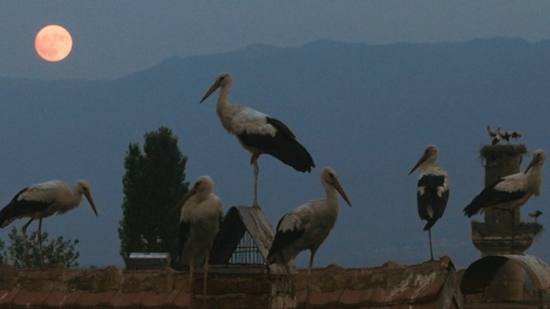 Nakon uvodnog mita film se premješta u suvremeni kontekst, u selo Češinovo u Sjevernoj Makedoniji, poznato po velikoj populaciji bijelih roda koje ondje žive u harmoničnom suživotu s ljudima. Kotevska prati poljoprivrednika Nikolu Coneva i njegovu obitelj – ženu, kćer, zeta i unuku – kako s užitkom i u veselju rade na svojoj zemlji. Ipak, u toj idiličnoj slici od samog početka postoji pukotina jer jedan značajan član obitelji, Nikolin sin, više nije tu – napustio je Češinovo u potrazi za boljim životom. Ovo suštinski balkansko iskustvo odlaska mlade populacije ostaje poput sjene nad pastoralnom atmosferom uvodnih kadrova filma, a sinova odsutnost dodatno se naglašava isprepletanjem prizora Nikole i rode, koju film metonimijski povezuje s prokletim Siljanom.