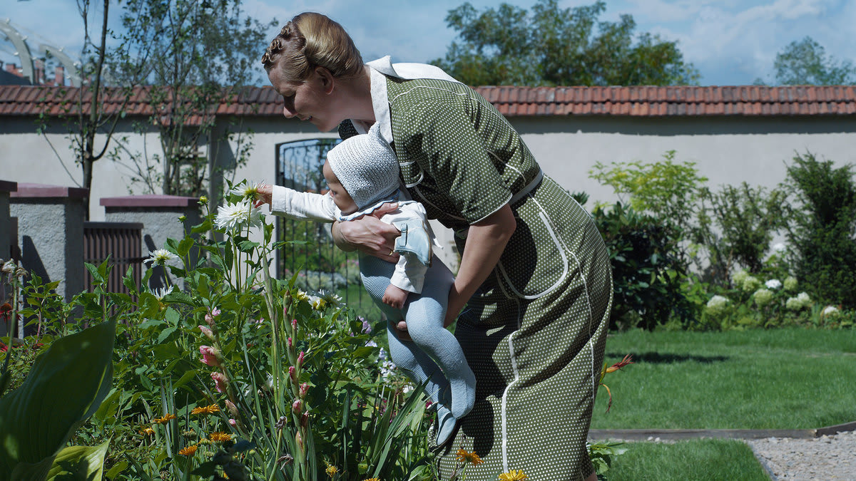 Nakon toga pred gledateljem se otkriva svijet nacističke obitelji, njihova kuća, vrt, svakodnevni predmeti koji svi djeluju izrazito artificijelno i plastično, pomalo podsjećajući na scenografije filmova Roya Anderssona. Artificijelnost tih scena u izrazitom je kontrastu s naturalističkom glumom Christiana Friedela kao Rudolfa Hӧssa i Sandre Hüller kao njegove supruge Hedwig, koji djeluju kao vrlo hladni ljudi s rijetkim probojima emocionalnosti, smijeha ili ljutnje. U srazu svijeta koji je umjetan ne bi li prikrio užas koji se (doslovno) iza njega krije, i naturalističke glume nacista koja se pretvara u glumu nacista koji glume normalan život, nastaje umjetnička reprezentacija Holokausta koja na najbolji način oblikuje te “obične ljude”.