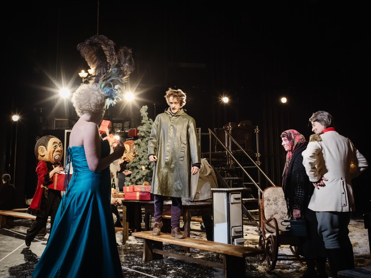 Adrian Pezdirc kicoša i oportunista Agramera tumači kao karikaturu gej ormaruše, Luka Knez je kao buntovni kadet i apsolvent konzervatorija Horvat tek jedno iritantno, plačljivo dijete, dok je Dado Ćosić u ulozi staloženog, cerebralnog intelektualca Gregora toliko bljutav i nezačinjen da bi bilo velikodušno i nazvati ga karikaturom. Ćosić nije ništa bolji u ulozi arsenalskog radnika Andreja. Njegov pokušaj ruskohrvatskog toliko je promašen da ga nadilazi jedino monstruoznost perika. Muški dio ansambla upotpunjuju Toma Medvešek, Ivan Pašalić i Pjer Meničanin.