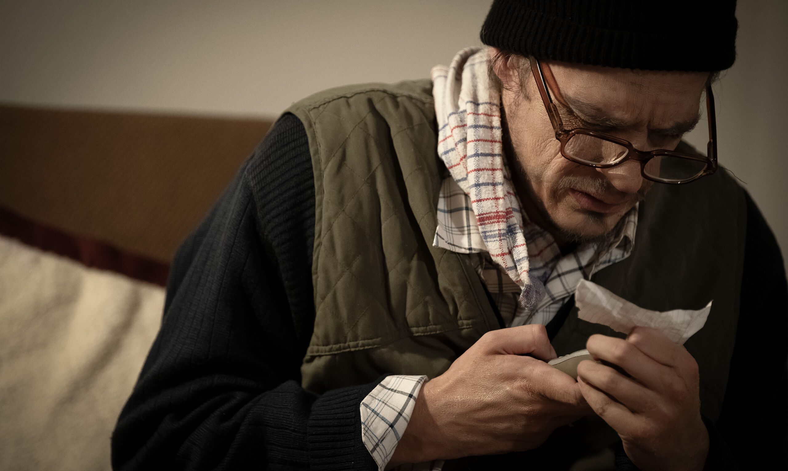 Lovro Rimac u tom prostoru pokazuje izniman talent – svaki detalj, od treptaja do pokreta ruke, od izraza lica do daha, oblikovan je istraživačkim procesom, toliko precizno da gotovo zaboravljamo da je riječ o mladom glumcu koji tumači starca, a ne stvarnoj osobi u svojim osamdesetima. Njegova izvedba balansira između dokumentarnog i emotivnog, oslobađajući prostor u kojem publika postaje suautor i gdje predstava nastaje u interakciji s prisutnima. Upravo u toj suigri, koja koristi intimni prostor, predmete koji prizivaju prašnjavu prošlost, tišinu, pokrete i samu publiku, jasno se nazire metodologija Četveroruke: kazalište se tretira kao proces, izvedba kao istraživanje, a publika kao aktivni sudionik.