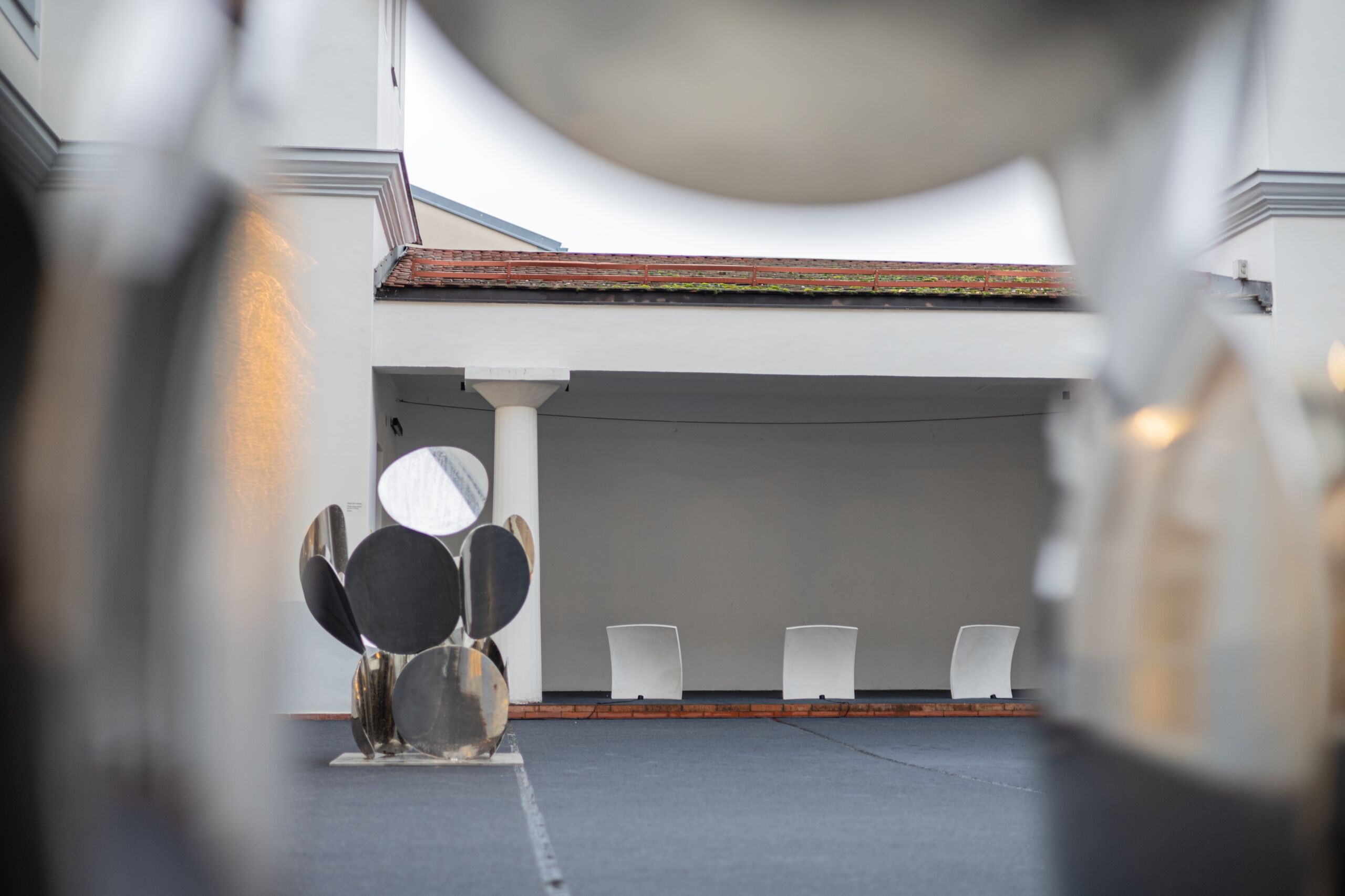 Silaskom u prizemlje i izlaskom u ugodni atrij muzeja susrećemo se s preostalim Svjetlosnim formama koje ovisno o dobu dana reflektiraju danje svijetlo, odnosno muzejsku rasvjetu. Tamo nas čeka i treći suvremeni rad u dijalogu s Bakićem – Polje djelovanja: Gorući užitak Sare Salamon. Ovom audio radu moramo se približiti da bi ga čuli, zvukovi šume reflektiraju odsutnost tog okoliša u muzejskom prostoru, ali nas kroz akustična ogledala i usmjereni zvuk na trenutak pomiču van prostora u kojem se nalazimo. Šuma, ključno mjesto narodnooslobodilačke borbe i Bakićeve spomeničke plastike tako dodaje još jedan sloj istraživanju Bakićevih procijepa.