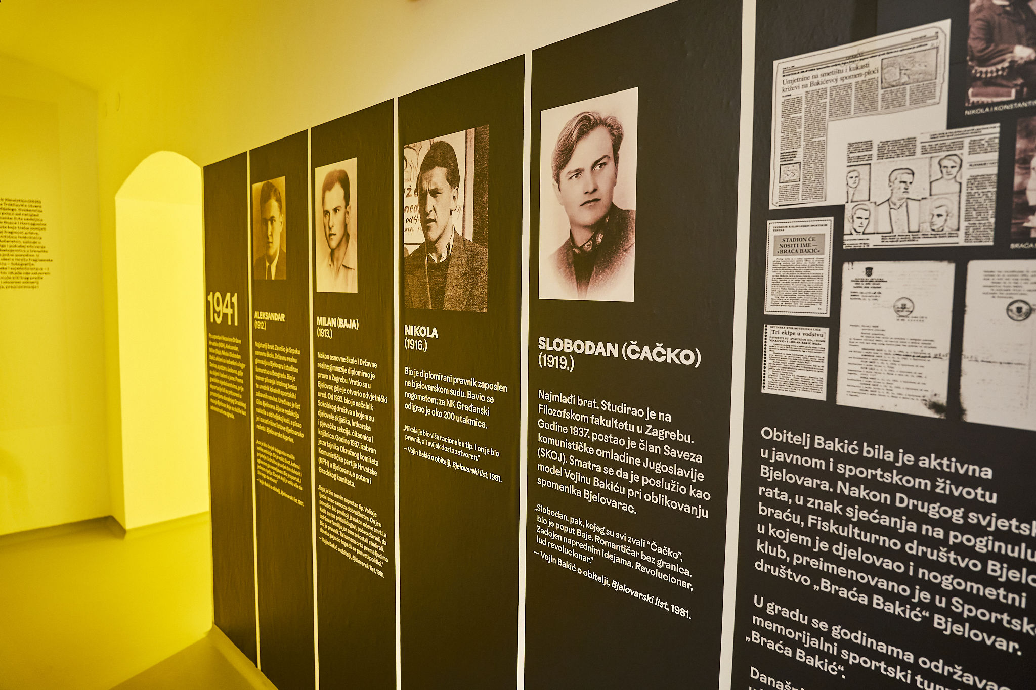 Silaskom u podrum muzeja suočeni smo s velikim zidnim tekstom o četvorici Bakićeve braće koje su, prema svjedočanstvima, ustaške vlasti držale upravo u prostoru današnjeg Gradskog muzeja Bjelovar prije nego što su ubijeni u logoru Jadovno. Zidni tekst nije moguće izbjeći. Biografski detalji života četvorice braće isprepleteni su s umjetnikovim sjećanjima na svakoga od njih.