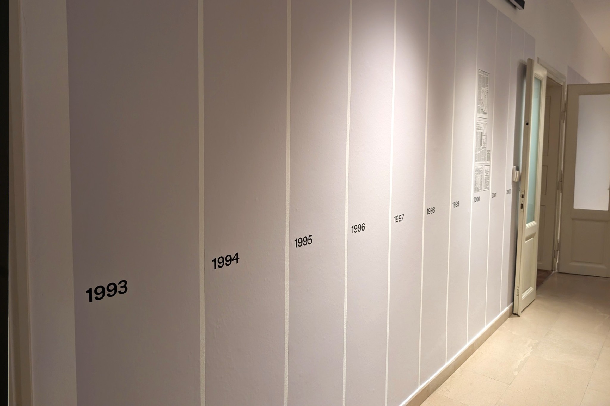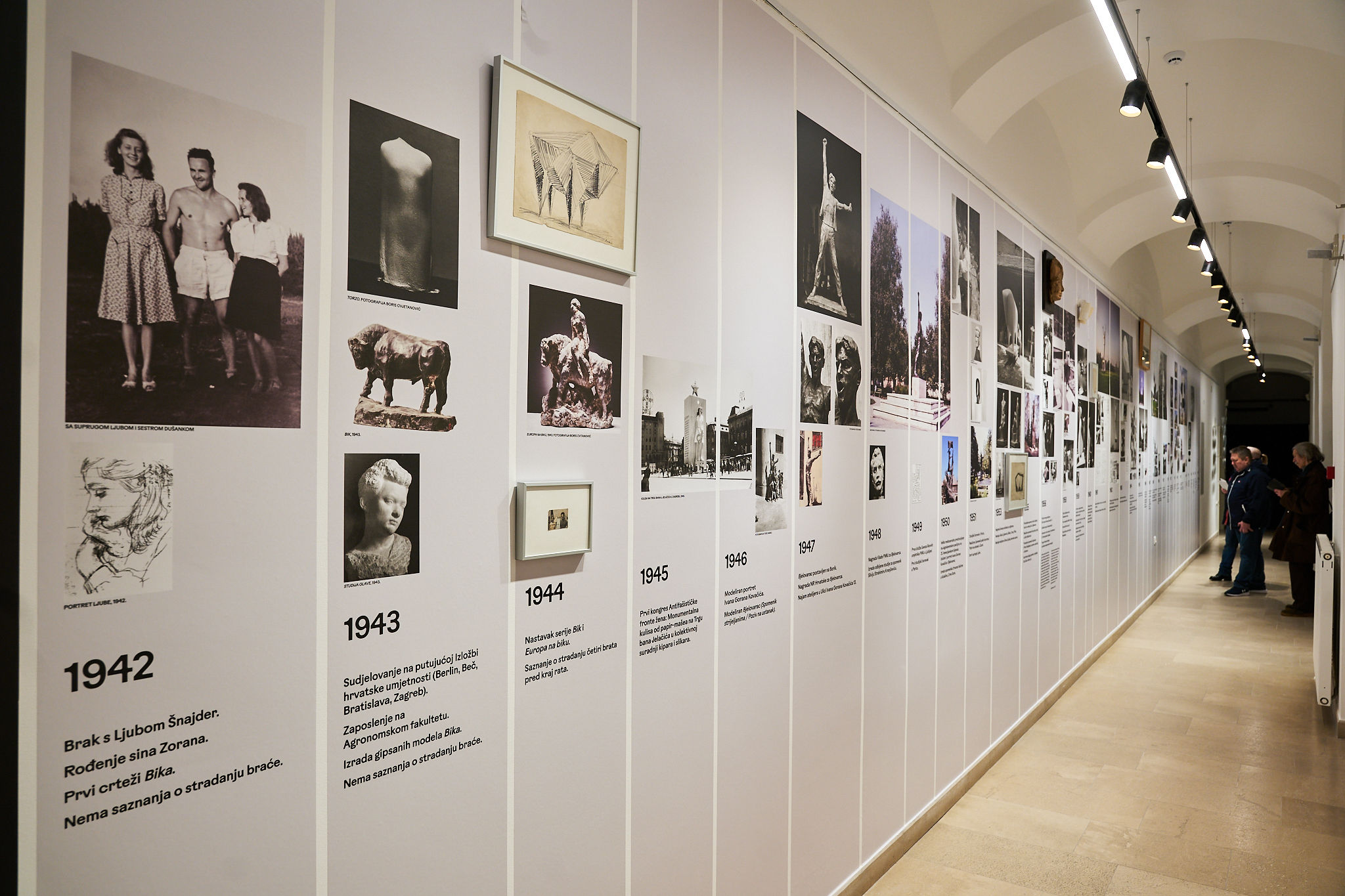 Krećući se labirintskim prostorom muzeja, imamo priliku upoznati se s detaljima Bakićeva života kroz zidnu kronologiju. Sama forma ove kronologije poznata je onima koji su već posjetili neku od suvremenih izložbi o slavnom kiparu, poput već spomenute retrospektive u MSU-u 2013. Bogata biografija, puna uspjeha i nagrada do 1990., u kontrastu je s praznim devedesetim godinama kada nakon umjetnikove smrti i niza uništenih spomenika 1991. i 1992. slijede godine bez spomena. Potom dvijetisućitih počinju prvi osvrti, izložbe i umjetničke intervencije koje pokušavaju ispraviti arhivsko i fizičko nasilje. Iako ovaj kronološki koncept nije jedinstven ovoj izložbi, isprekidan je suptilnim dodatkom osobnih predmeta, poput obiteljskih fotografija, podsjećajući nas da je jedan od procijepa kojima se bavi upravo Bakićeva osobna tragedija koja se dogodila prije njegove umjetničke slave.