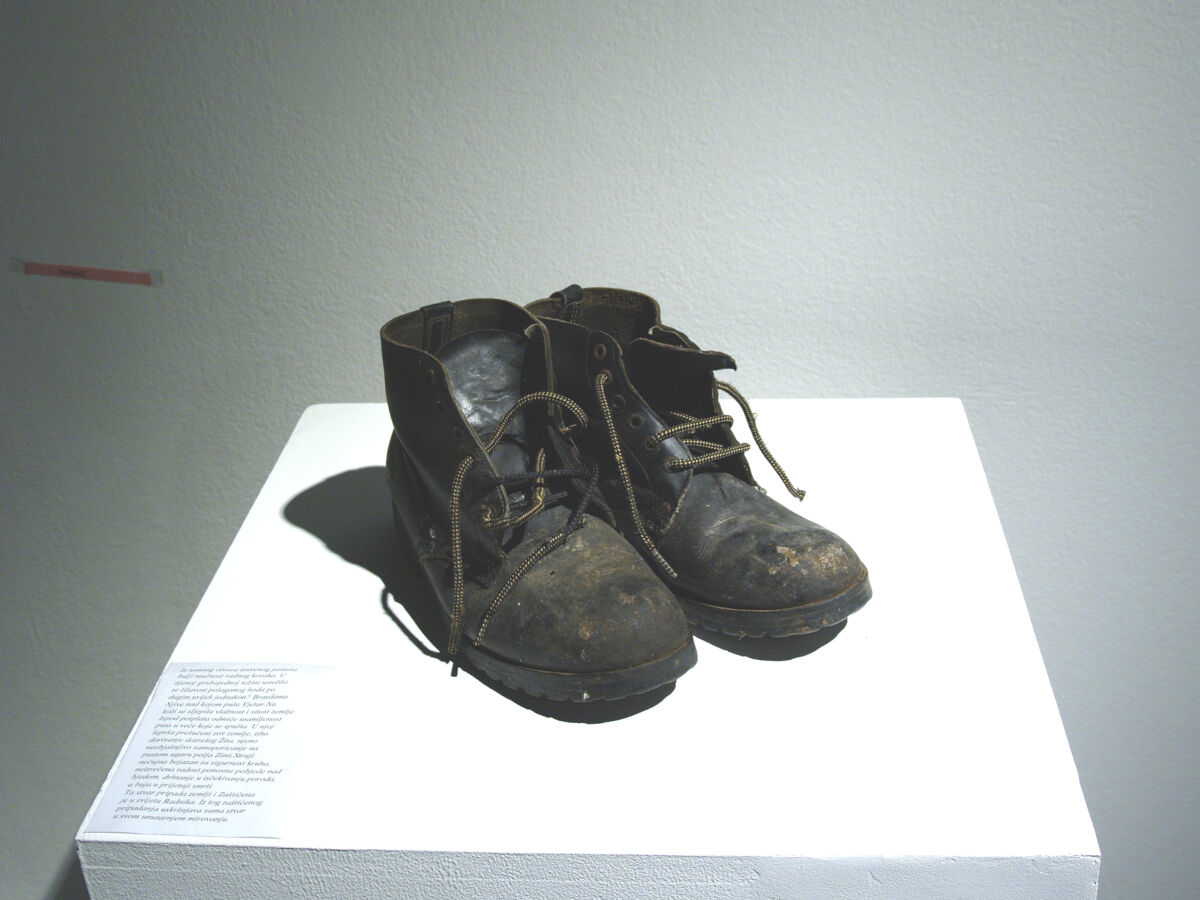 Iz teksta Tanje Špoljar: “Pino je (prvih) pedeset godina cijelo vrijeme izvrtao sustav, pikao u njega, solidarizirao se s radnikom, upozoravao na propast Uljanika još u prvom pretvorbeno privatizacijskom valu, a njegovi su socijalni i radnički performansi često bili predmet zabrana, optužbi ili burnih reakcija. Podbadao je vrlo često ravno u srž političkih igri, ne libeći se miješati i u dnevnu politiku i odnose na istarskoj političkoj sceni. Može li se nešto desiti ovakvim umjetničkim akcijama, neka konkretna promjena? Pino levitira u tom prostoru, uvijek budan i uvijek spreman reagirati, ali iz srca, jasno i bez ustezanja, bez uljepšavanja i estetike, u svom trližu sa postolama na postamentu. Ogoliti neke stvari..i to je nešto. Koliko god život umjetnika bio sizifovski posao.“