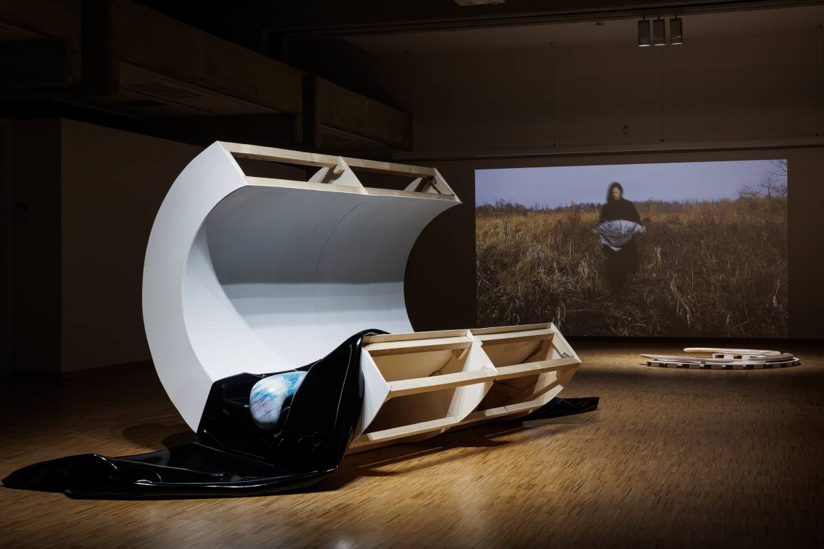 Riječ je o instalaciji koja se ne zatvara u stabilnu cjelinu, već ostaje u stanju promjene, napetosti i međusobnog dijaloga njenih elemenata. Sam postav funkcionira poput toka – fragmentiran, ali povezan, bez jasnog početka i kraja, osjetljiv na prostor i prisutnost gledatelja.” Navedeni video rad “uvodi suptilnu, ali ključnu performativnu dimenziju cijelog postava.