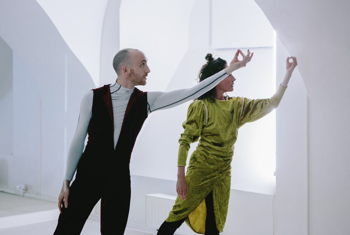 Fiction fiction is a poetic, choreographic performance by Alix Eynaudi in collaboration with Hugo Le Brigand, with sound by Turf & Surf – the musical duo Han-Gyeol Lie and Paul Kotal. Envisioned as a “haunted anticipation,” the piece blends gestures from previous works – BRUNO (2021) and Death by Landscape (2024) – into a dreamlike, reconfigured choreography. It presents movement as memory, where words press beneath the skin of dance, and where fiction overlaps with fiction, carried by the sonic textures and dramaturgical companionship of Turf & Surf.