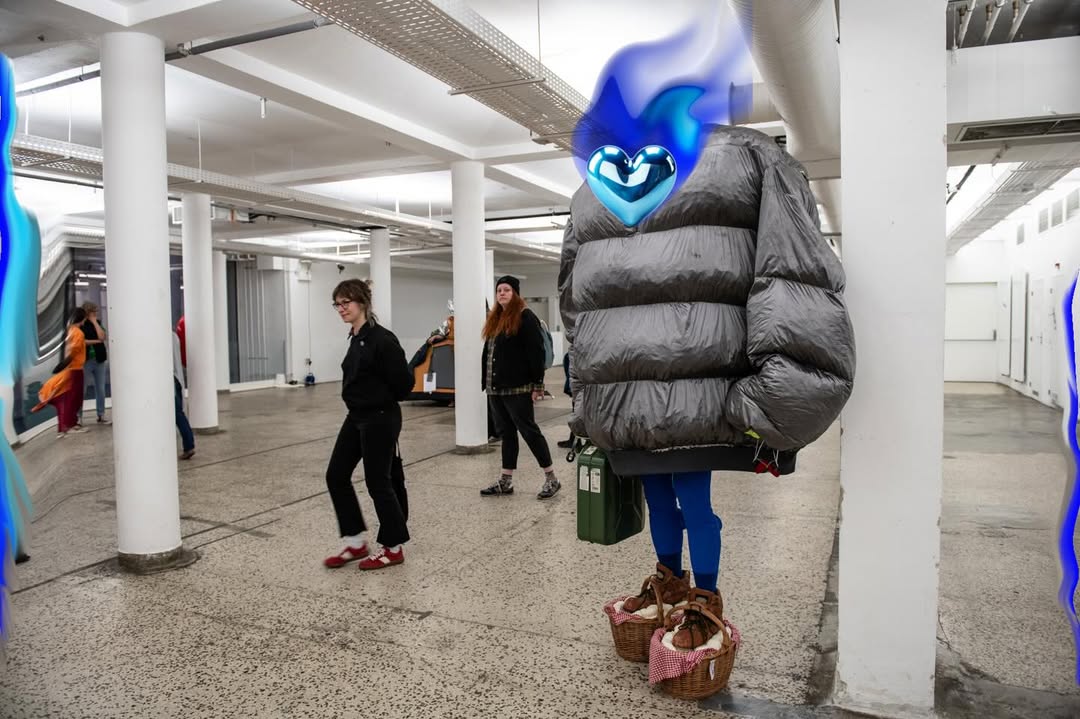 Riječima umjetnika_ca: “Sretno nikad više nakon osam. Odjeća čini muškarca. Riječi oblikuju ženu. Ja sam mi minus ti.”