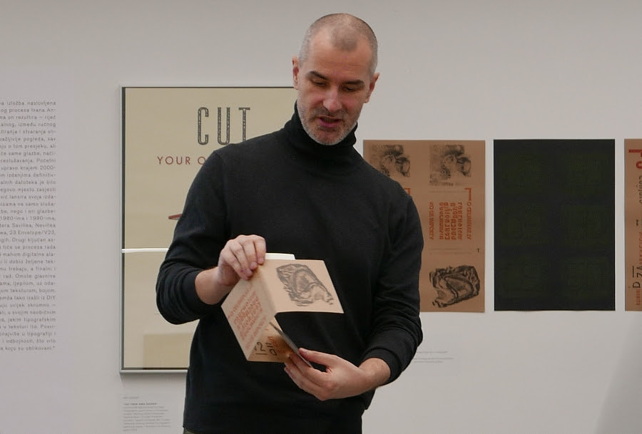 Povod je njegova aktualna samostalna izložba pod nazivom A/D koja daje presjek autorovih recentnih projekata na presjeku između dizajna, glazbe i nezavisnog izdavaštva, s naglaskom na omotima nosača zvuka.