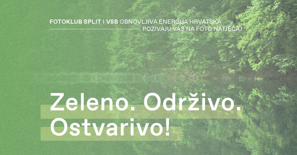 Tema Fotoklub Split u suradnji s društvom VSB Obnovljiva Energija Hrvatska raspisuje nagradni fotografski natječaj na temu – Zeleno. Održivo. Ostvarivo!, a od autora_ica se traži fotografska interpretacija zelene teme – zaštite okoliša, bioraznolikosti, bioravnoteže i prirode.