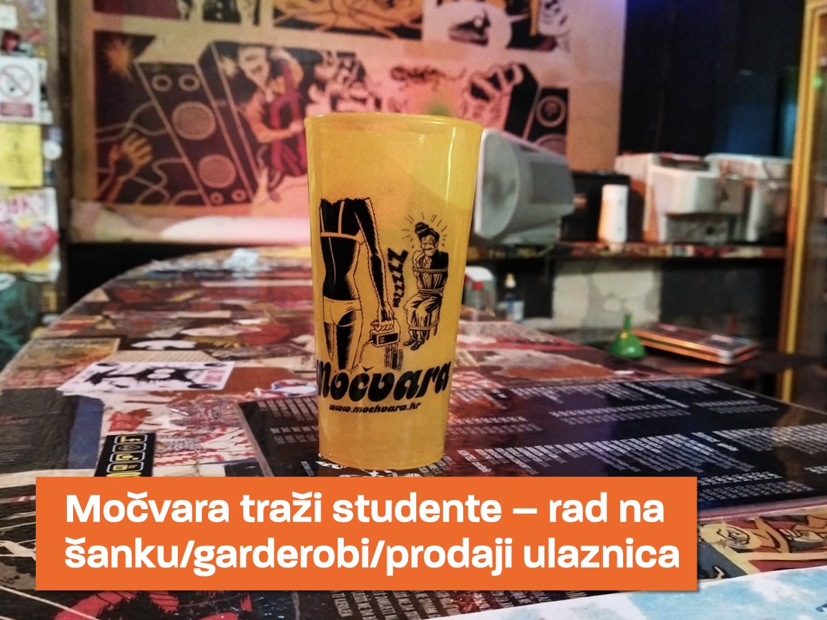 Intervju Klub Močvara traži studente za rad na ulazu, garderobi i šanku. Traže se studenti koji su voljni naučiti obavljati navedene poslove, a prethodno iskustvo je poželjno, no ne i nužno.