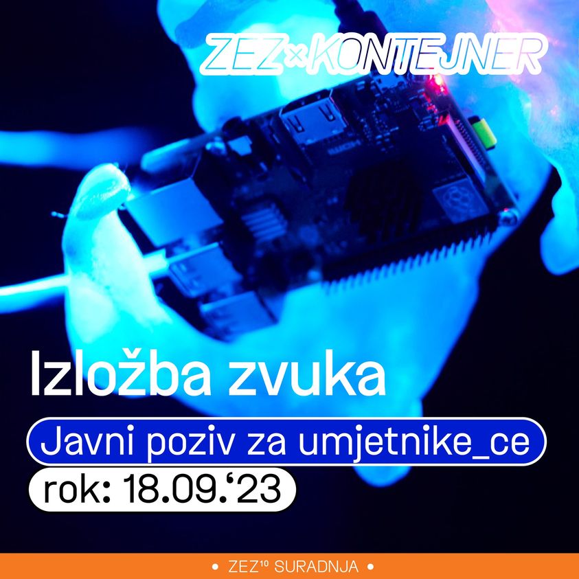 ZEZ – Zavod za eksperimentalni zvuk i KONTEJNER pozivaju domaće i regionalne zvučne umjetnike_ce da na osmo izdanje Izložbe zvuka prijave svoje performanse, zvučne instalacije, audio i A/V radove te druge medijske i eksperimentalne radove kojima je zvuk konstitutivni element ili osnovni medij. Multimedijalna izložba održat će se od 9. do 16.11.2023. u Zagrebu.