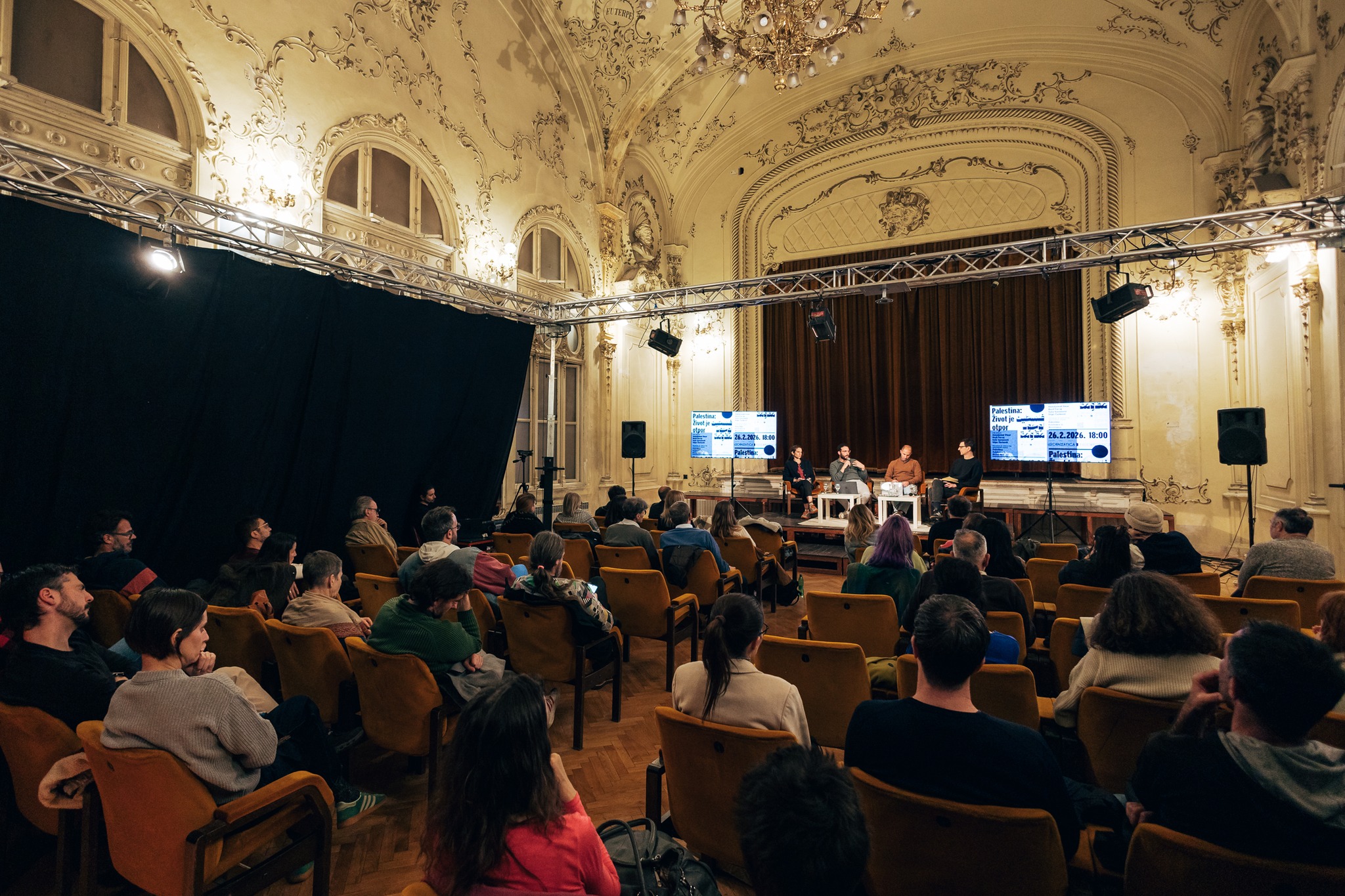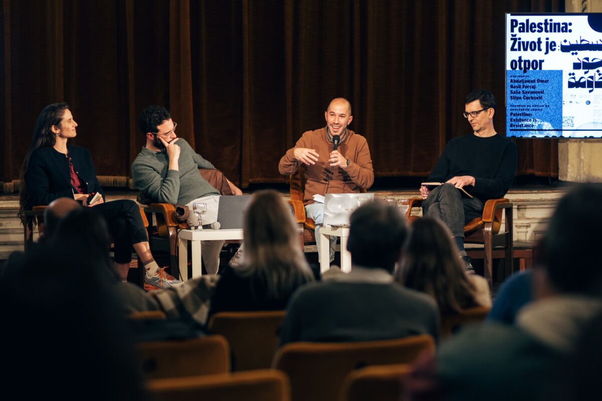 Nakon uvoda suorganizatora, Ozrena Pupovca, Omar i Farraj iznijeli su osobna svjedočanstva, te predstavili situaciju na okupiranoj Zapadnoj obali i otvorili raspravu o mogućnostima i ograničenjima palestinskog otpora. Po završetku njihova izlaganja, u razgovoru im se pridružuju književnica i politologinja Saša Savanović te teoretičar i prevoditelj Stipe Ćurković.