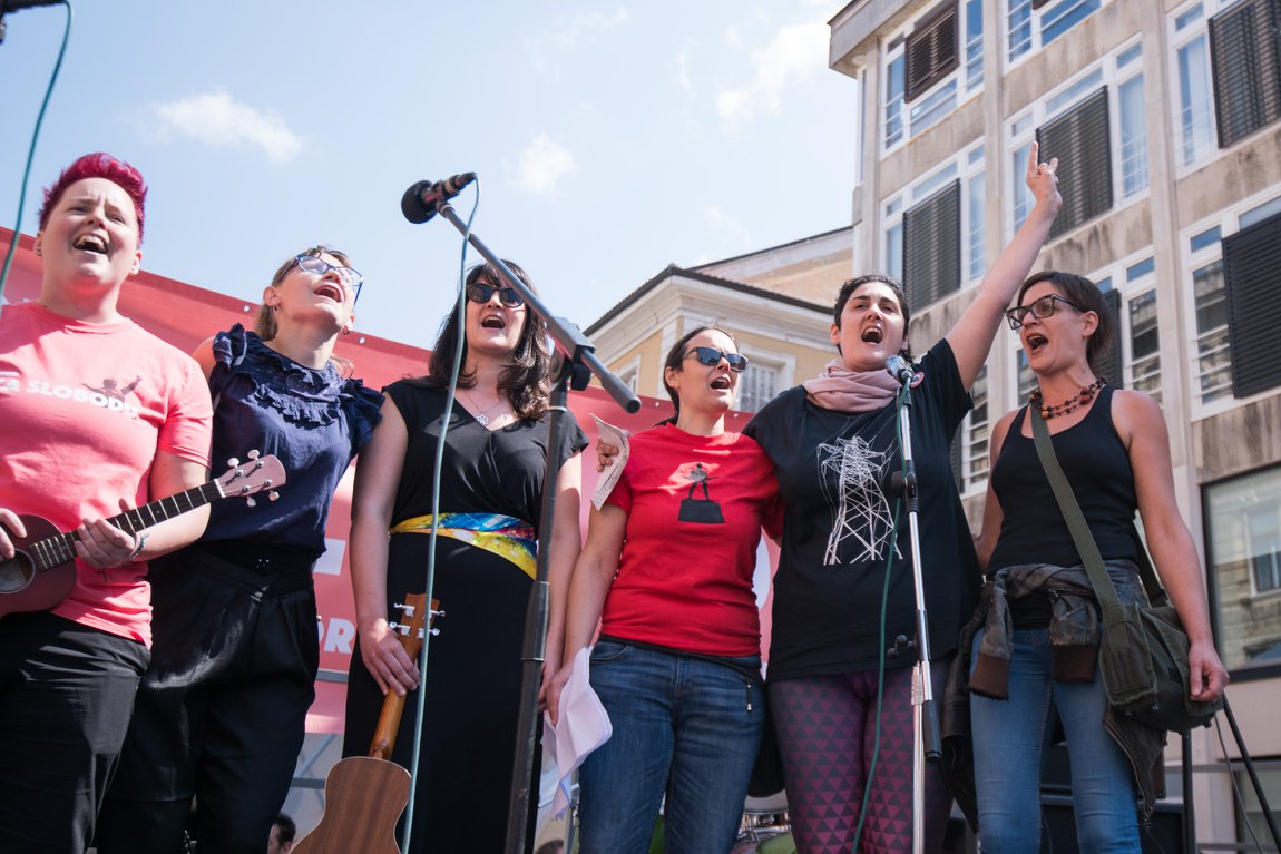 Blic U posljednjih dvadesetak godina, na prostorima država nastalih raspadom Jugoslavije, prisutan je rastući interes za aktivizam kroz pjevanje, koji se ogleda u formiranju i djelovanju aktivističkih zborova. Taj je fenomen toliko izražen da je već postao predmetom akademskih istraživanja. U svojoj knjizi Socialism Now: Singing Activism after Yugoslavia Ana Hofman, kombinirajući povijesni i etnografski pristup, kao njihov zajednički nazivnik identificira uvjerenje u važnost i revitalizaciju socijalističkih ideja i vrijednosti u današnjim vremenima. Iako je svaki od njih fokusiran na pojedine aspekte borbe za jednakost, kao poveznicu pronalazi i nezadovoljstvo ekonomskom i društvenom regresijom u kojoj je sve teže vjerovati u obećanu sjajnu kapitalističku budućnost.