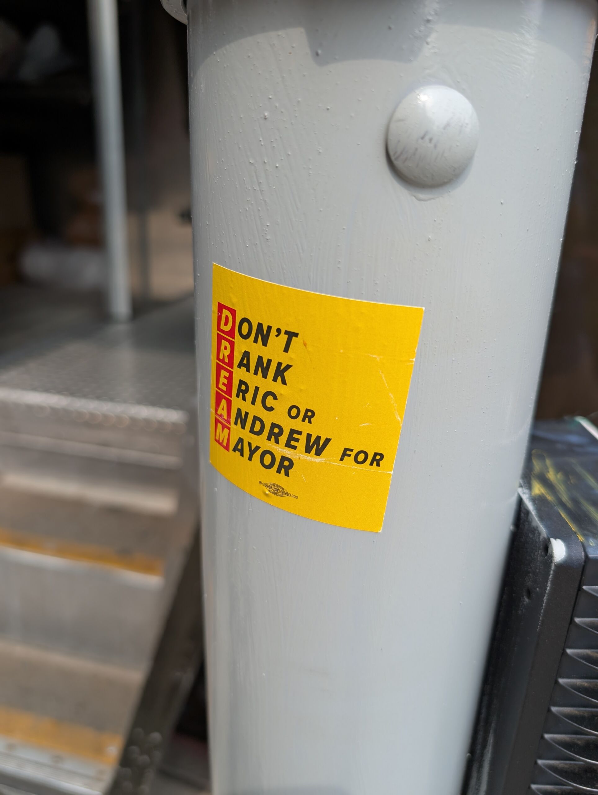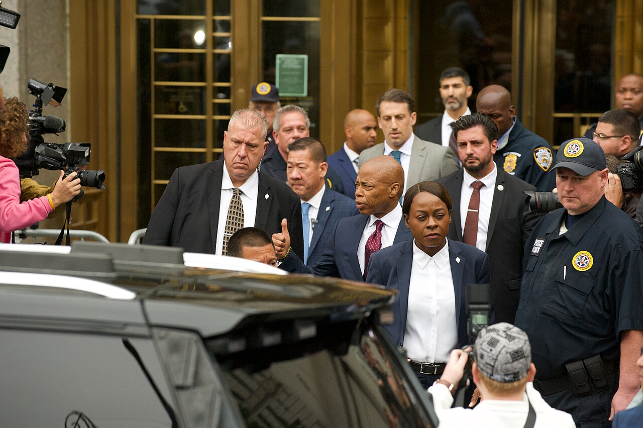 Njujorčani su tada za gradonačelnika izabrali Erica Adamsa, bivšeg policajca i dugogodišnjeg predsjednika okruga Brooklyn (nešto poput gradonačelnika, ali bez izvršnih ovlasti). Adamsov mandat bi vjerojatno prošao relativno nezapaženo da nije uhvaćen u nizu korupcijskih skandala, uključujući i nezakonite donacije iz Turske i besplatne letove Turkish Airlinesom. Iako se očekivala Adamsova ostavka s obzirom na broj istraga i vrlo negativnu reakciju javnosti (70 % glasača je krajem 2024. smatralo da treba dati ostavku), Adams je odbio odstupiti.