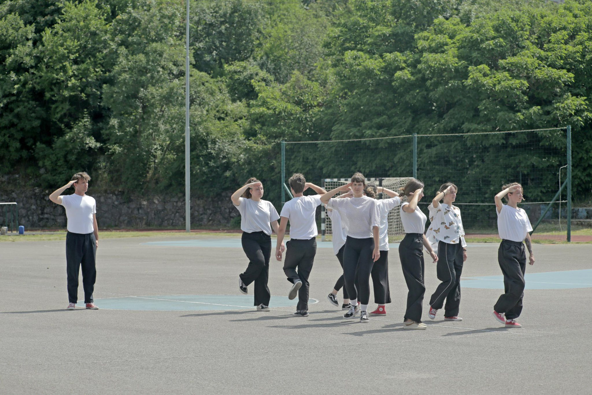 Blic Sunce je zašlo taman toliko da igralište ostane osvijetljeno, a glumice i glumci mogu gledati jedni druge potpuno otvorenih očiju. Stajali su okrenuti jedni prema drugima, iako na različitim, desecima metara udaljenim dijelovima terena. Na sebi su imali bijele majice na čijim su se prednjim stranama nazirale fotografije njih kao djece, dok je pogled na leđa odavao kako osoba lako može postati i samo broj.