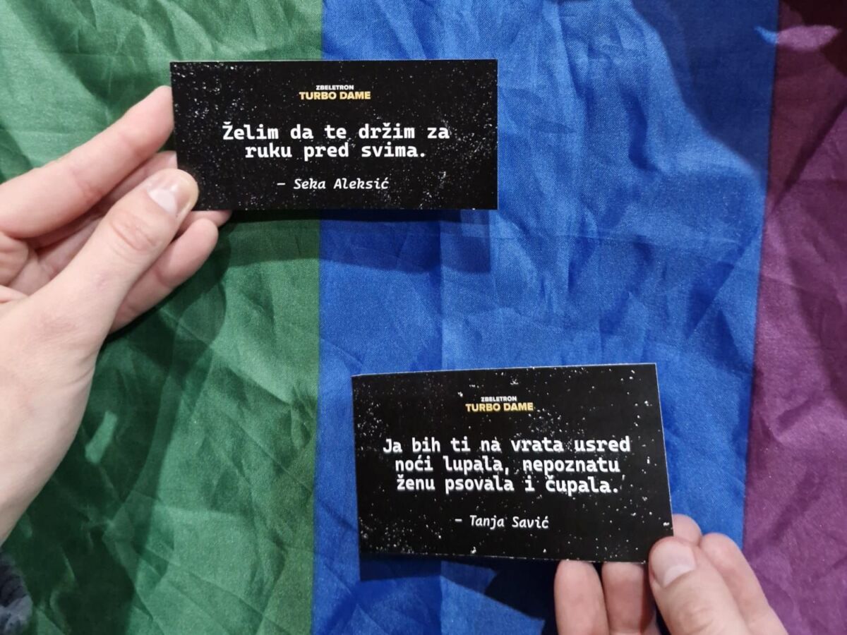 A na tragu queer (ne)sreće, već spomenut Zbeletronov parti TURBO DAME: Sestro, drži me održao se u petak, 20. ožujka, a tema mu je bila pet faza tugovanja (pjesme i izvođačice turbofolk glazbe podijeljene su u pet kategorija: poricanje, ljutnja, pregovaranje, depresija i prihvaćanje). Ovakav tip partija, smatra Anđelinić, potvrđuje kako je turbofolk zaživio kao dio queer kulture u čijim se maksimalističkim, pretežito emocionalnim pjesmama i spotovima te camp estetici odjeće i šminke izvođačica queer osobe pronalaze. Iako se u turbofolk pjesmama pjeva o heteroseksualnim odnosima, ljubavima, bolima i ljubomorama, queer osobe mogu pronaći užitak u njihovim sastavnicama.
