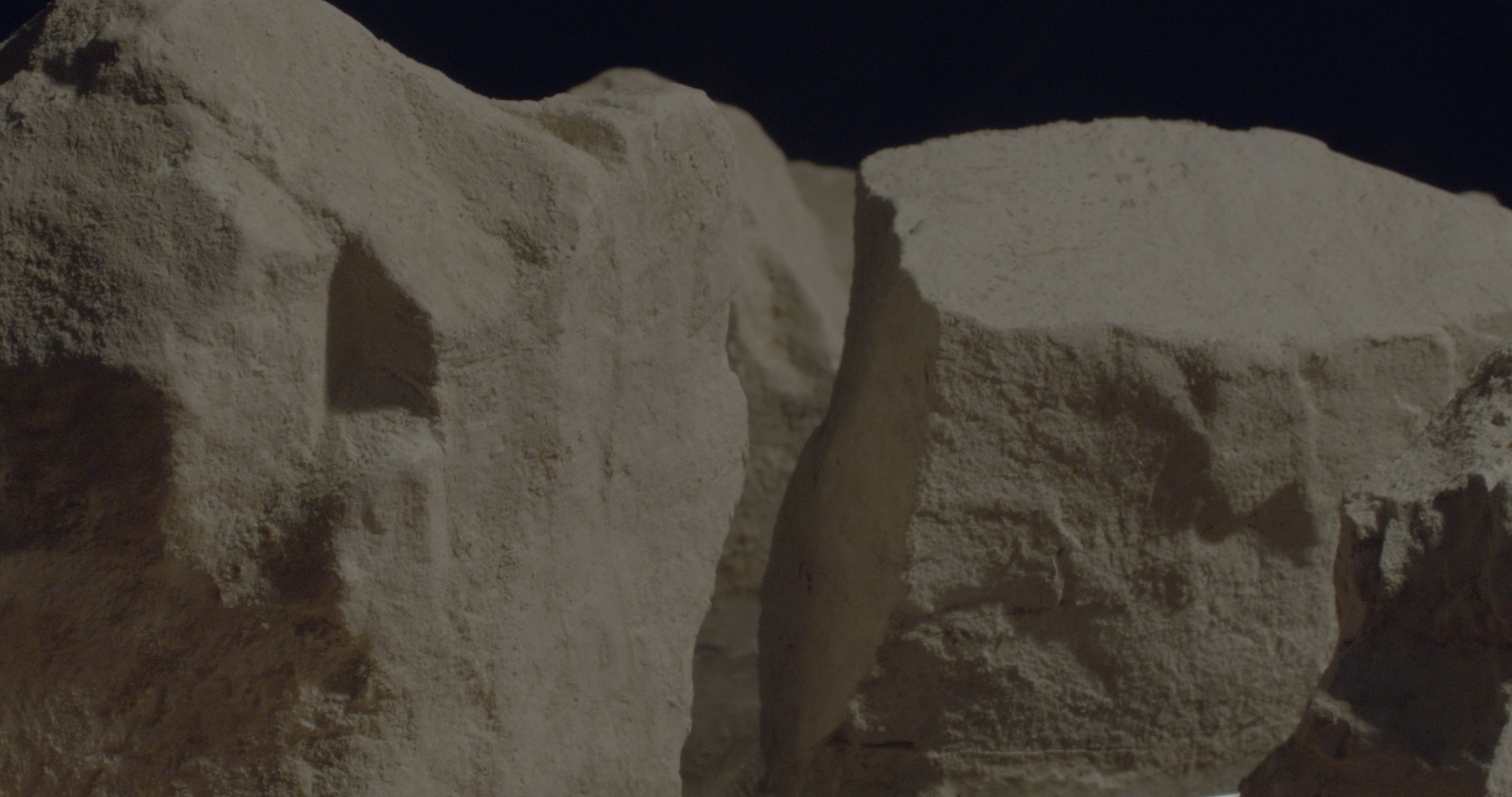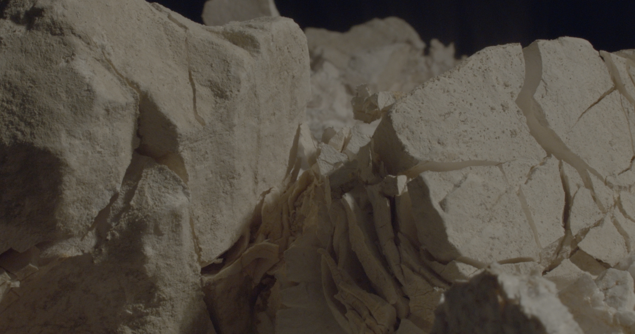 11:03–12:02. Statičan kadar: lavina finih blijedih čestica, grmljavina odrona, možda opet kao strateški dezorijentir, trik kojim se nešto benigno (šećer u prahu? prašak za pecivo? vapno?) deautomatizira i postaje kataklizma.
