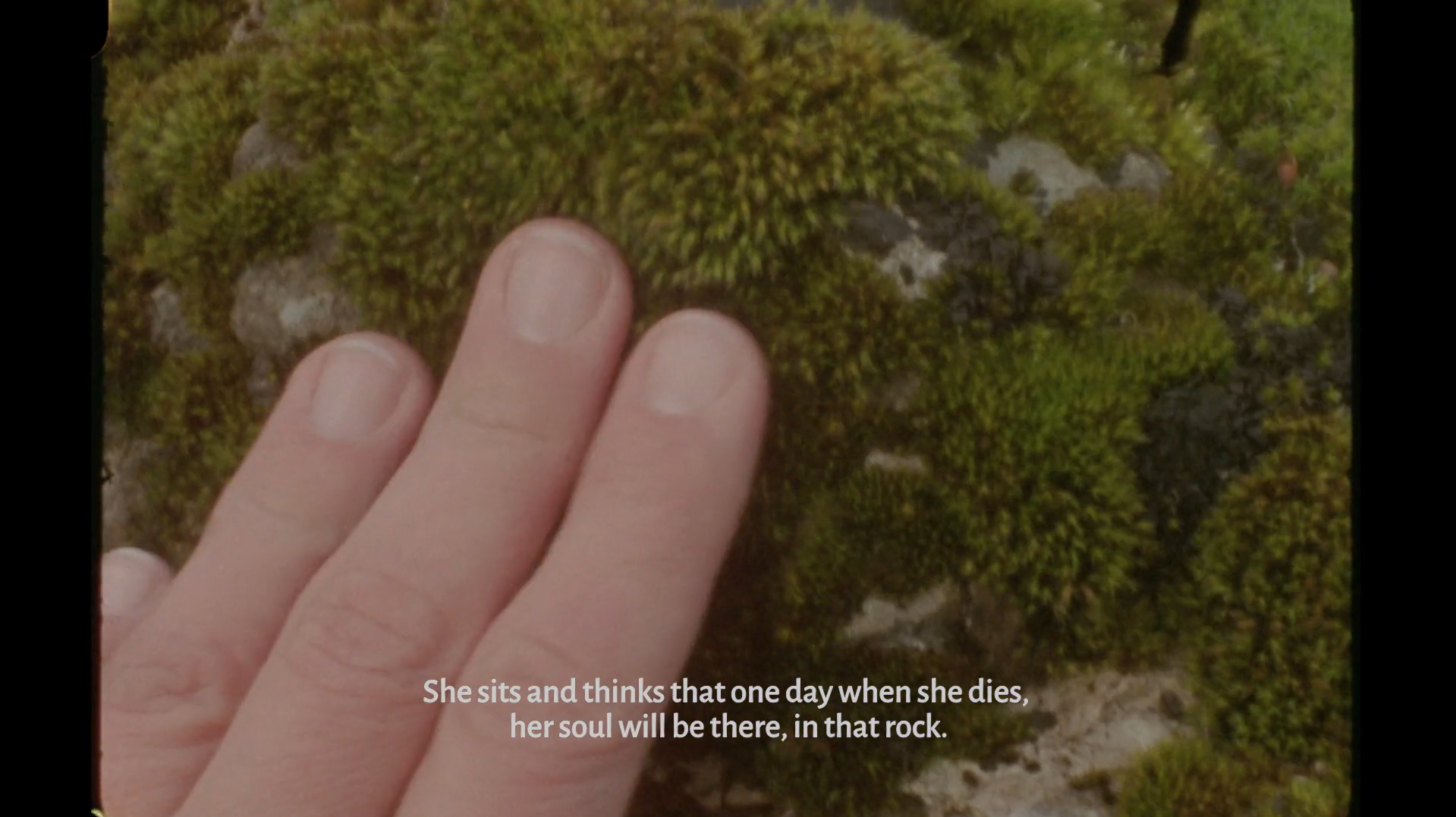 Ne nosim se najbolje s tim faktorom, ne prepoznajem ga ni dok mi je pred nosom (= na ekranu). Sasvim jasno, to je onaj kanal koji ide kroz, vezivno tkivo između stvari i zona kakve smo razgraničili prema vlastitoj mjeri (brzo/sporo, staro/novo, živo/neživo), postavljeno u multimilenijsku perspektivu opstanka i preživljavanja, indiferentno prema iskoristivosti (u svijetu opće monokulturne mobilizacije, lišaj je dezerter); to je stvarni alteritet u supstanciji ovog filma, ključni konverzacijski partner (ali jedva čujem).